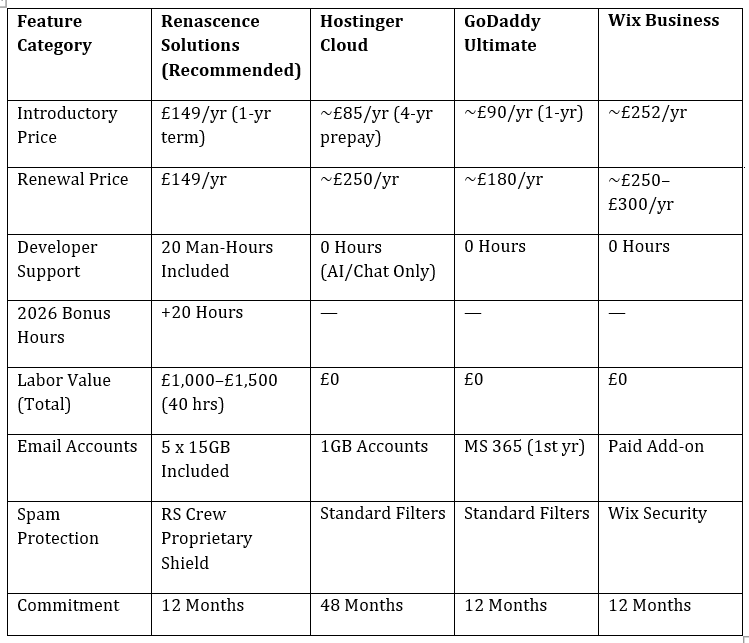 A transparent comparison of how we provide more than just hosting. These plans deliver professionally developed websites at a price point previously considered impossible in the managed services space.